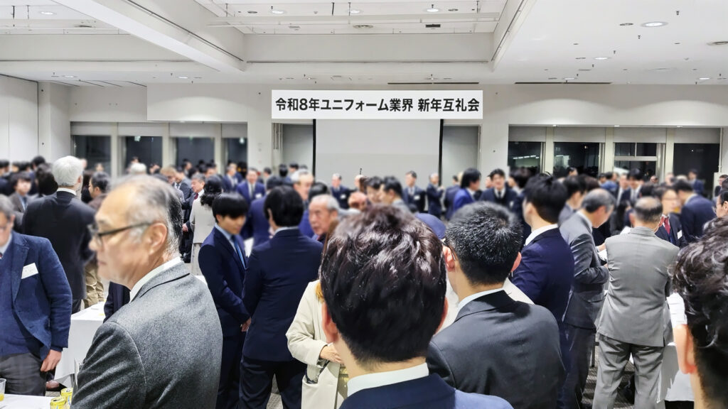 日本ユニフォーム協議会と大阪府被服工業組合は、1月5日、大阪市中央区のOMMビルで「ユニフォーム業界新年互礼会」(日本被服工業組合連合会協賛)を開催し、素材メーカー、商社、副資材・縫製機器、アパレル、販売会社、小売店など、ユニフォーム関連事業者計102社、483名(来賓ほか含む)が参加しました。
